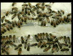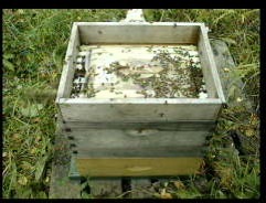 Fresh bag of syrup installed. A half hour later and the bees begin to take to the syrup.